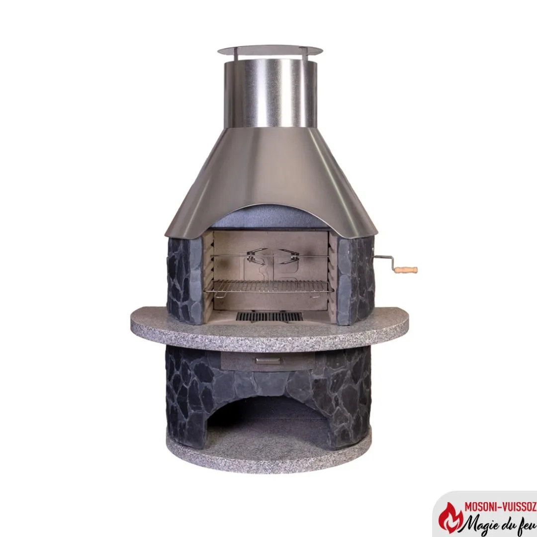 Dieser Außenkamin verleiht Ihrem Garten dank seiner imposanten Erscheinung automatisch Eleganz und Ästhetik. Diese Art von Konstruktion ist langlebig und eignet sich ideal, wenn Sie eine dauerhafte Außenanlage suchen. Seine Schieferplatten machen natürlich seinen ganzen Charme aus Diese betonen eher seinen authentischen Charakter als seine Modernität.
