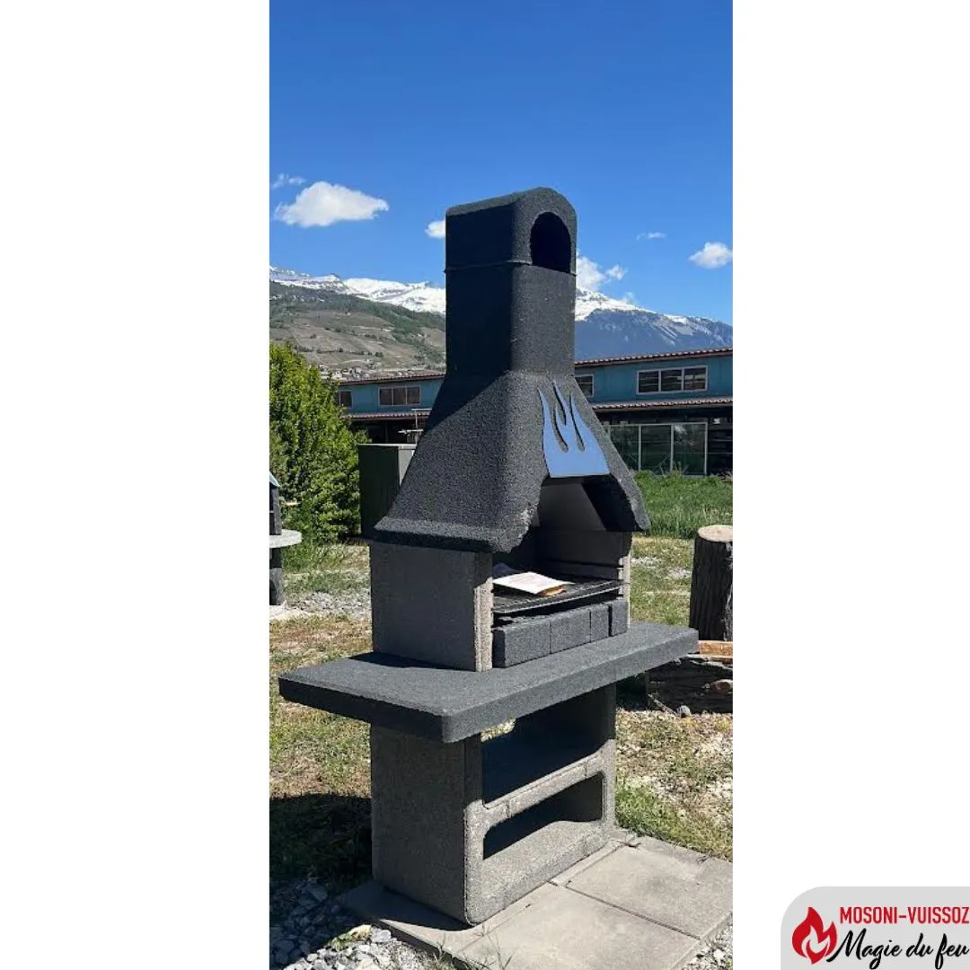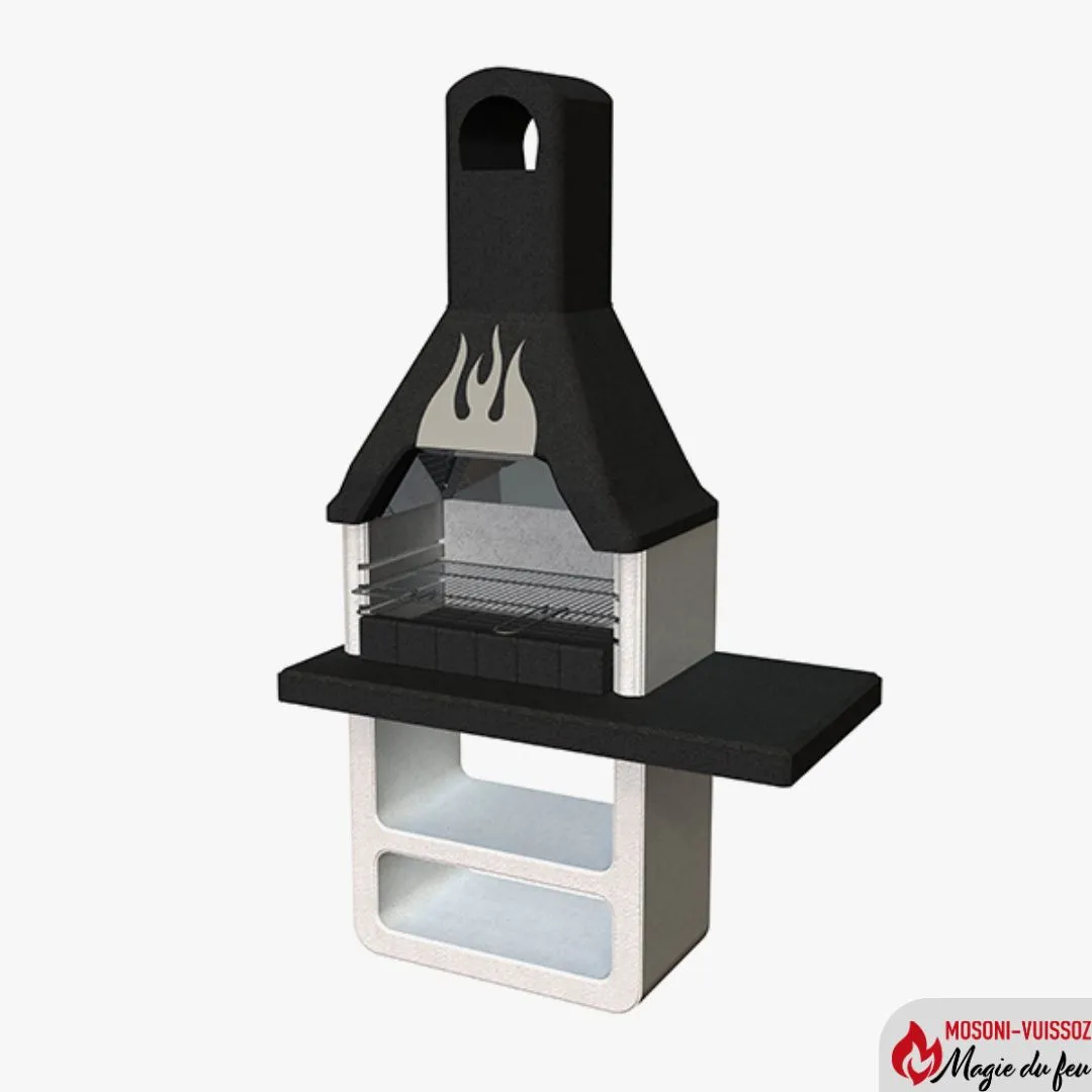 Es handelt sich um einen Kamin aus Leichtbeton, was seine thermische Effizienz erhöht und den Energieverbrauch senkt. Er verfügt über eine abnehmbare und abwaschbare Flammendekoration aus Edelstahl, die ihm einen einzigartigen Charakter verleiht. Dieser Kamin wird mit Holz befeuert. Er verfügt über eine Feuerstelle mit einem verchromten Rost, der in 3 Höhen verstellbar ist. Er hat eine Ablage, die Ihnen eine schöne Arbeitsfläche bietet.