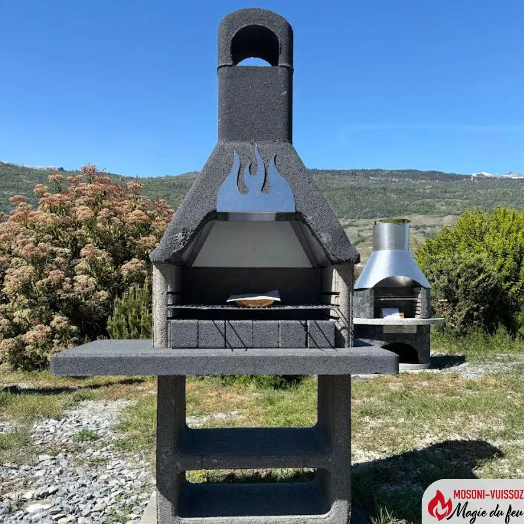 Er lässt sich individuell gestalten, indem man die rohen Teile des Kamins bemalt. Dank seines Leichtbetons ist er sehr einfach zu montieren und die Reinigung ist unkompliziert. Seine Größe ist ideal für Veranstaltungen, da Sie damit Grillgerichte für bis zu 12 Personen zubereiten können. Die Materialien sind witterungsbeständig.