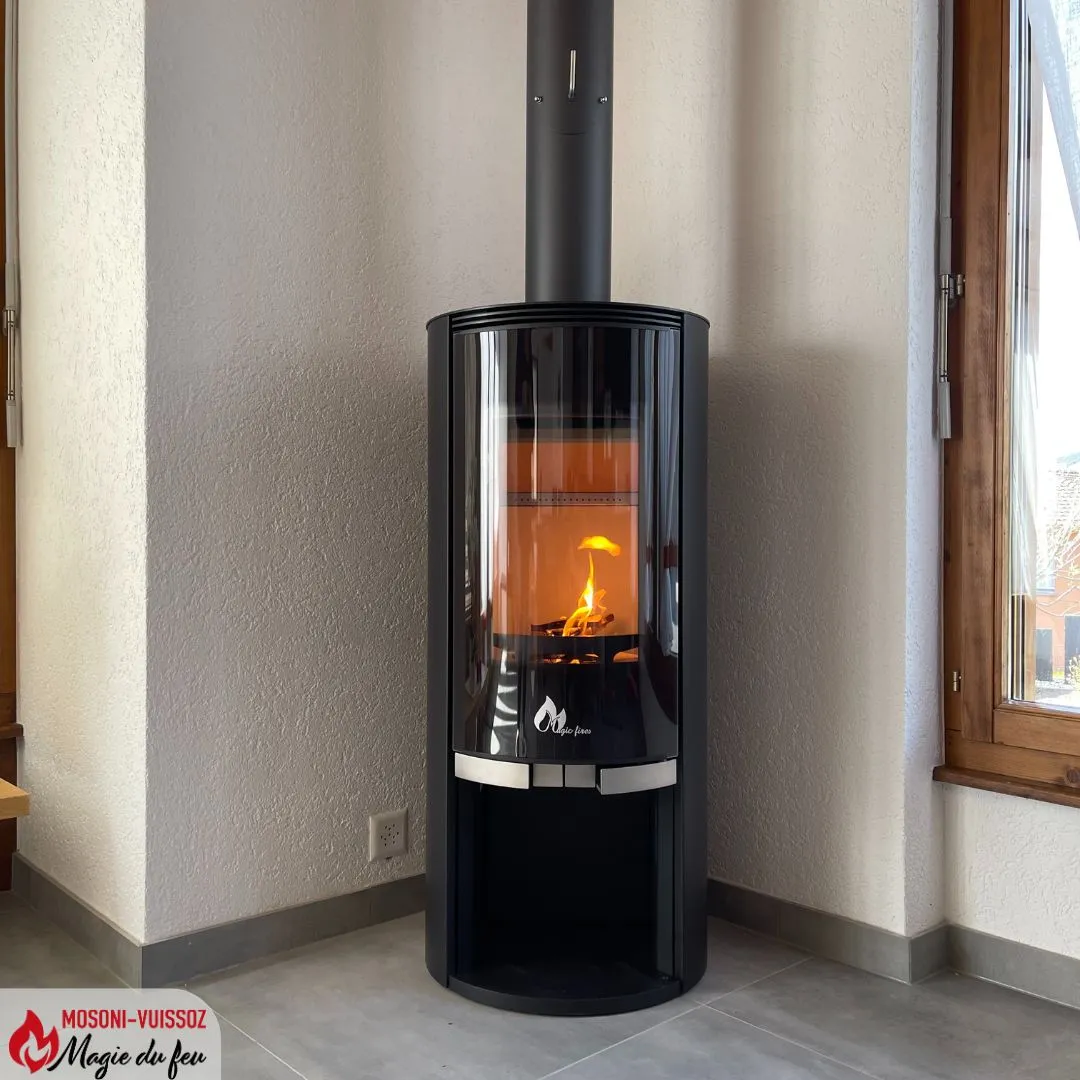 Dieser wunderschöne Holzofen ist mittelgroß und passt in jedes Zuhause. Dank seiner runden Form findet er in jeder Ecke Ihres Hauses Platz. Je nach Aufstellung können Sie den Ofen drehen, um das Flammenspiel zu bewundern, egal wo Sie sich im Raum befinden.