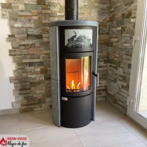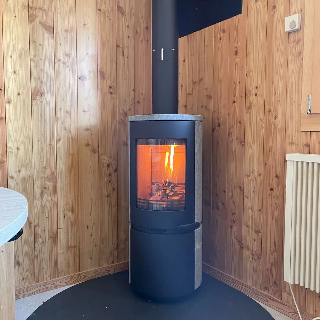 Er verfügt über Specksteinplatten auf der Oberseite und an den Seiten, wodurch er viel Wärme speichern kann. Praktisch ist, dass der Stein nach dem Erlöschen des Feuers noch mehrere Stunden lang Wärme abgibt. Er hat einen 5-Liter-Tank, der sehr praktisch ist. Der Griff bleibt kühl, was die Handhabung sicherer und komfortabler macht.
